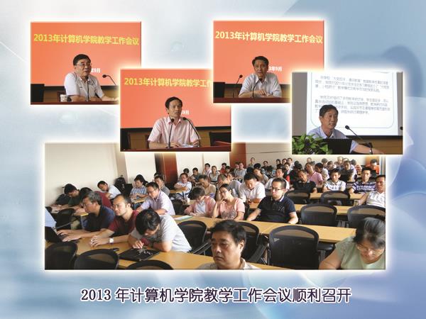 计算机学院2013年教学工作会议于2013年9月13日下午在东校区计算机大楼1106会议室召开。出席会议的有永利集团88304官网副校长叶志明教授、教务处处长万旺根教授,以及学院执行院长张武教授、学院党委书记董晓雯和计算机学院全体教师。会议以“深化教育教学改革实践、关注每位学生进步成长”为主题,聚焦“大类招生、通识教育”后三年的人才培养。会议由学院党委副书记徐文培主持。