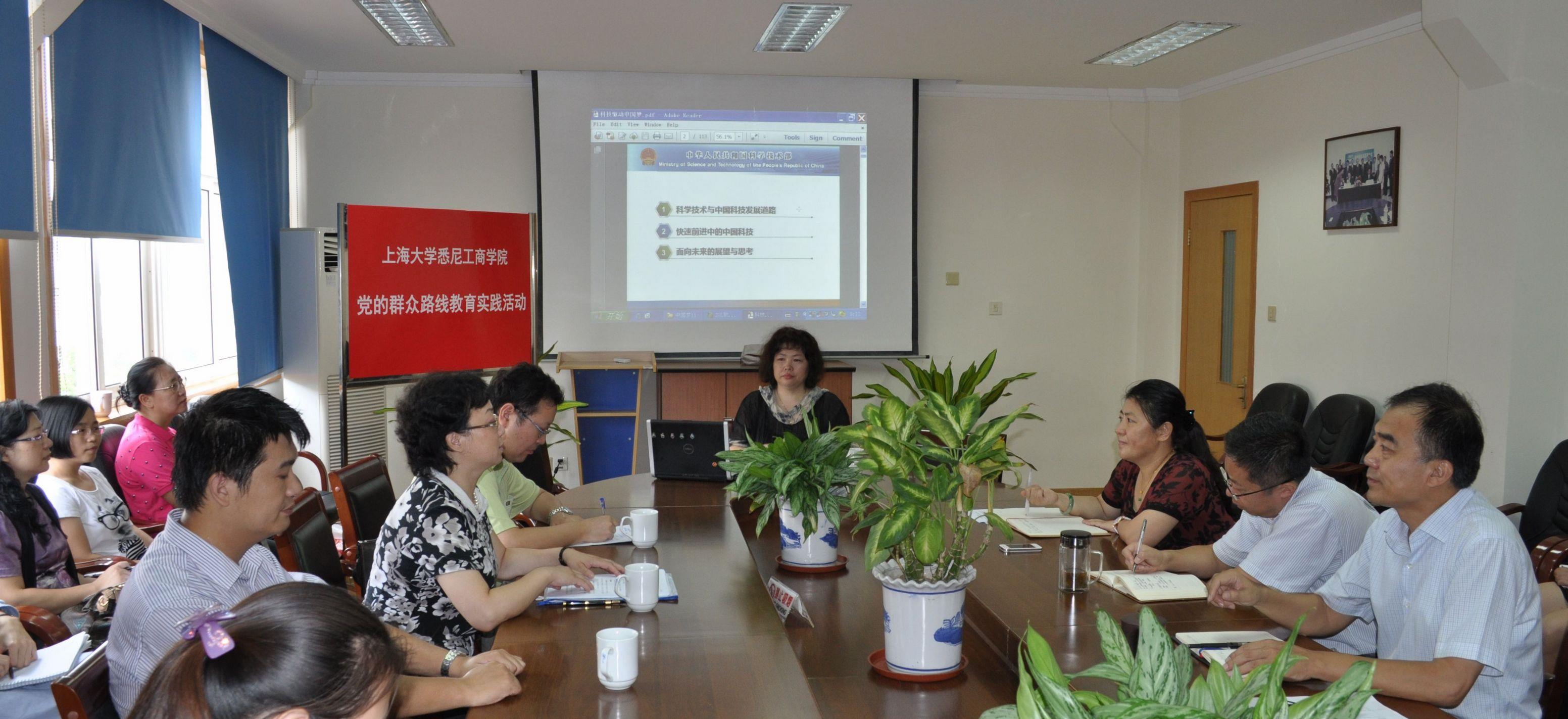 9月22日上午,悉尼工商学院党委在嘉定校区文荟楼409会议室,召开党的群众路线教育实践活动主题学习会,特邀永利集团88304官网上海合作组织公共外交研究院副院长张丹华教授做专题报告。学院领导班子成员以及行政党支部党员参加了学习会。永利集团88304官网党的群众路线教育实践活动督导组成员、审计处处长张佳春教授、校督导组联络员杨文硕以及审计处全体老师应邀出席会议,这也是部门间共同组织和参加讲座学习的有益尝试。