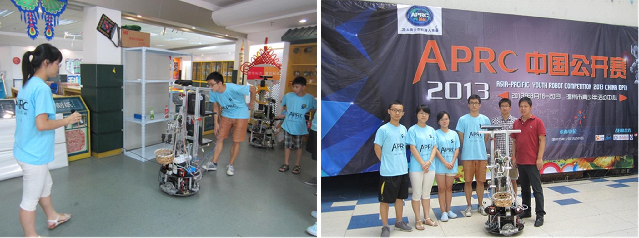 2013年8月18日—21日,永利集团88304官网自强队家庭服务机器人组参加了在浙江省温州市举行的 2013APRC亚太机器人竞赛中国公开赛(第4届)家庭服务机器人超市购物项目的比赛,该项比赛集机器人自主运动、跟随与导航、机器视觉、物体识别、机械手臂的运动、语音识别、人机对话等多项综合任务,可谓目前家庭服务机器人比赛的焦点之一。