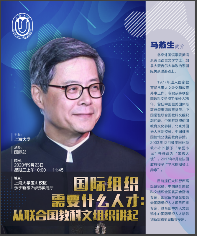 本次讲座旨在通过邀请资深外交外事和国际组织专家学者与学生进行分享交流,加深同学们对国际组织的理解和认识、介绍国际组织工作人员的使命追求和标准要求,为有志于从事国际组织工作的学生提供全方位的国际组织知识学习与思想交流的平台。